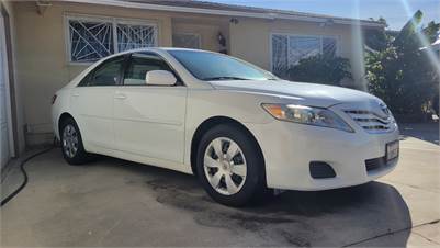 2010 TOYOTA Camry màu trắng. Máy êm, 195K freeway miles. Auto window, doors lock, trans, CD, radio. Cần bán giá $5,500. L/L: 714-323-9069